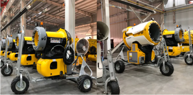 Cabin Skiing Group was founded in 2010, is China ' s ski resort ' one-stop service ' brand and the first domestic ski industry comprehensive service provider. The company ' s main business sectors include indoor and outdoor ski resort planning and design, indoor and outdoor ski resort large equipment supply, ski equipment design and development and production, advisory and operation management of ice and snow projects, and ice and snow industry research. The design team visited the snow machine production plant that day. The snow machine they produced was red as a whole, representing China Red. The snow machine export used ceramic technology and was easier to clean. Director Shirley Feng learned that the whole machine is domestic independent research and development. She encouraged factory managers to continue to increase R & D efforts to build national brand international competitiveness, helping China 's development of ice and snow industry.