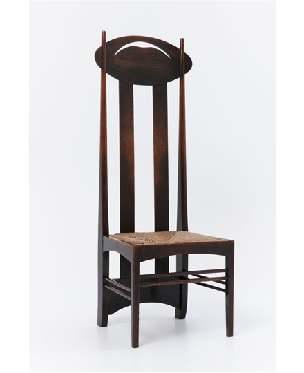 This work is the first high-backed chair designed by designer Charles Rennie Mackintosh who is inspired by the arts and crafts movement, emphasizing natural and organic forms. The Argyle is symbolized by an iron rod, and the rear pillar is used to support the oval headrest with a very distinctive shape of the fly swallow. Without armrests at the sides, it is often used at the dining table. By making Argyle, Mackintosh hopes to create a smaller and more intimate environment for people who have dinner together.